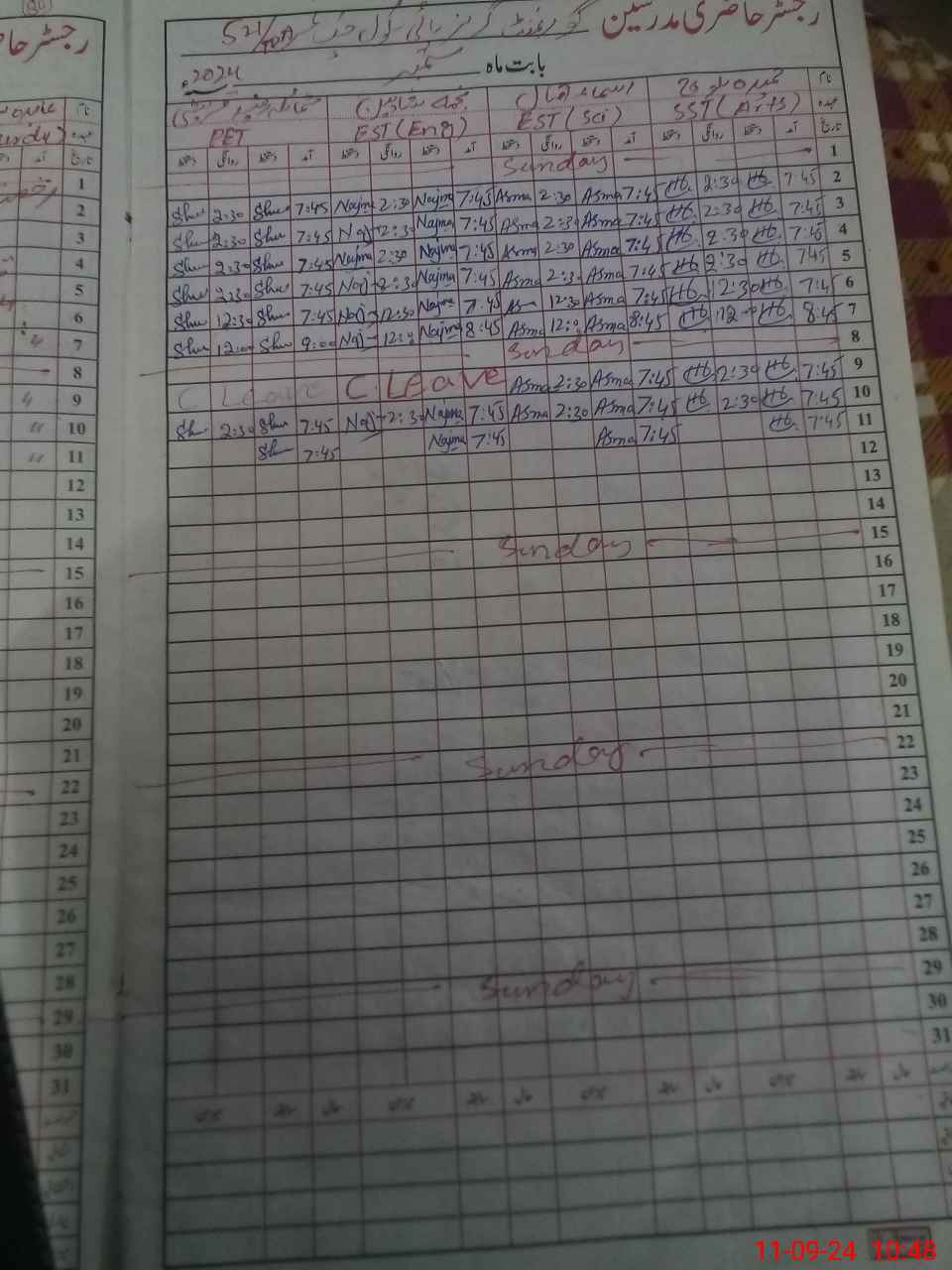 | Leave | Duty | Absent | Maternity | Medical | Ex- Pak |