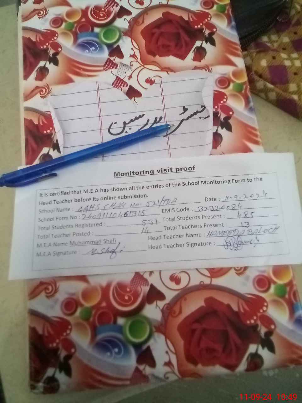 | Attendance Register | Head Teacher | MEA with School | Visit Proof |