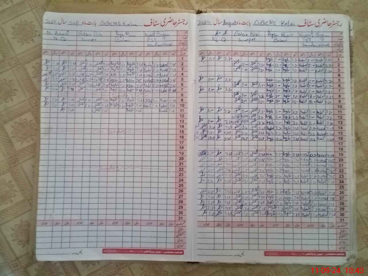 | CNIC | Full Name | Designation | R/C | Absence During Last Calender Month |