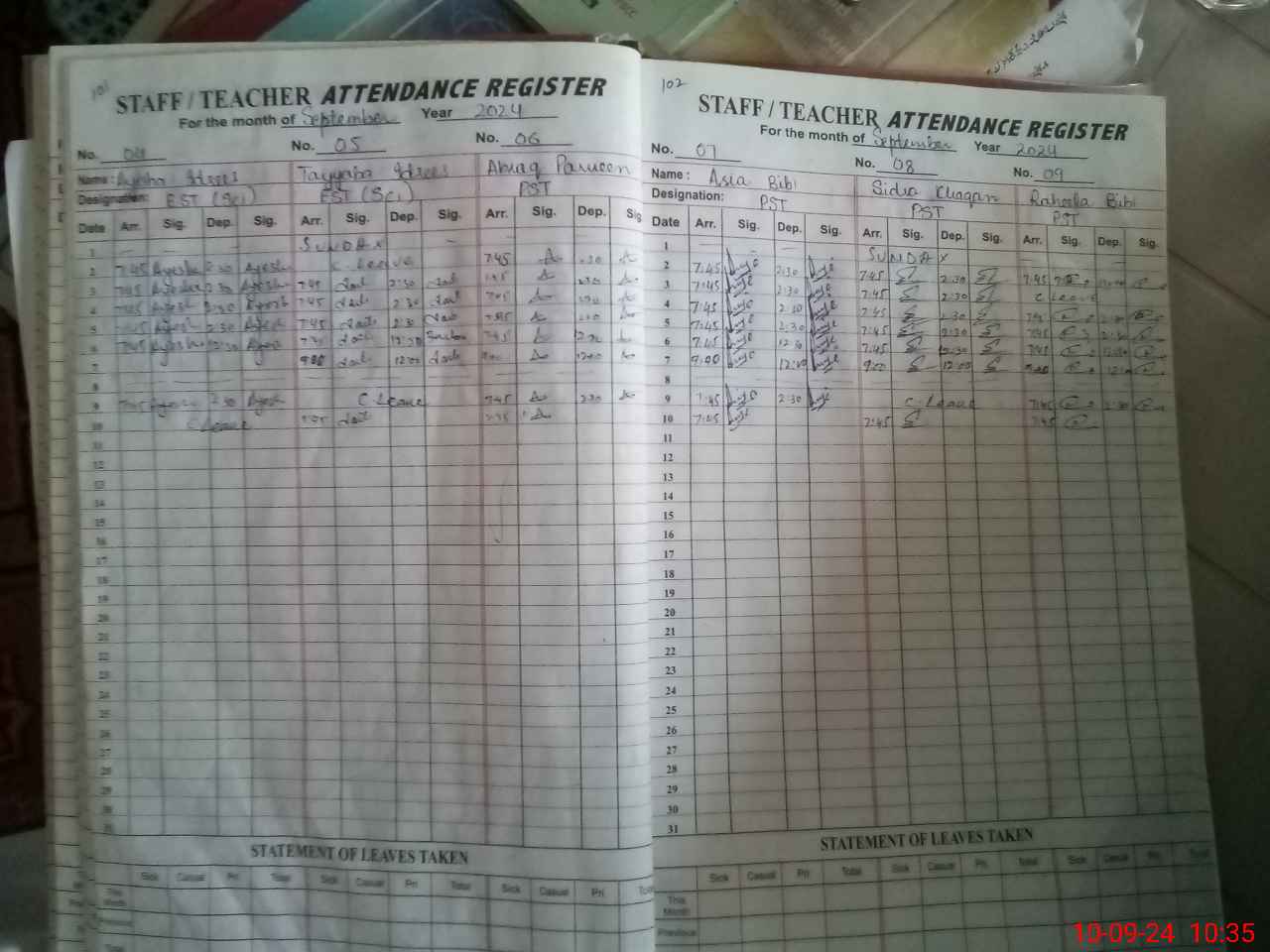 | Leave | Duty | Absent | Maternity | Medical | Ex- Pak |