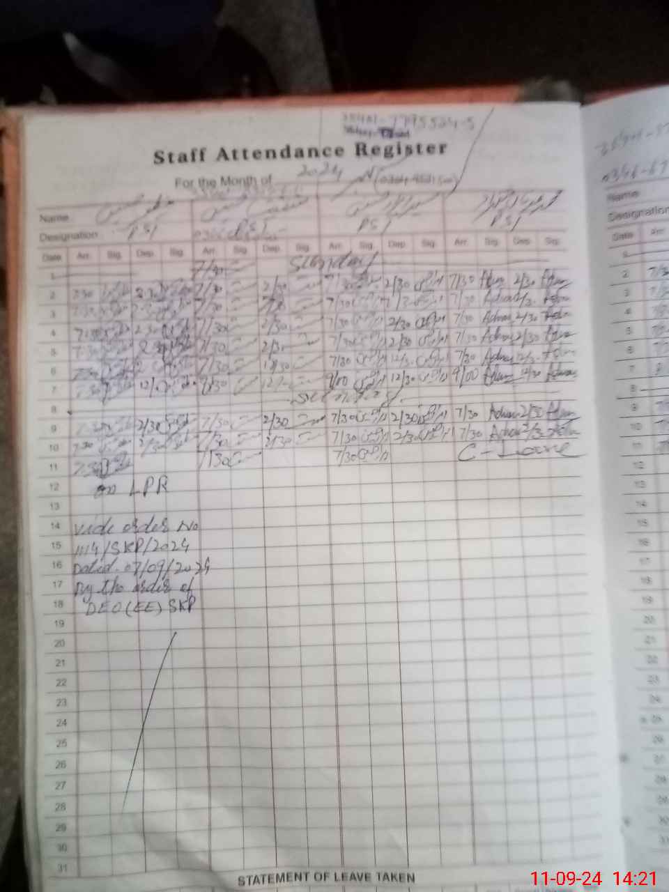 Leave Type | Remarks for today (Leave,Training, Exam,Absent,Late, Other duty) |