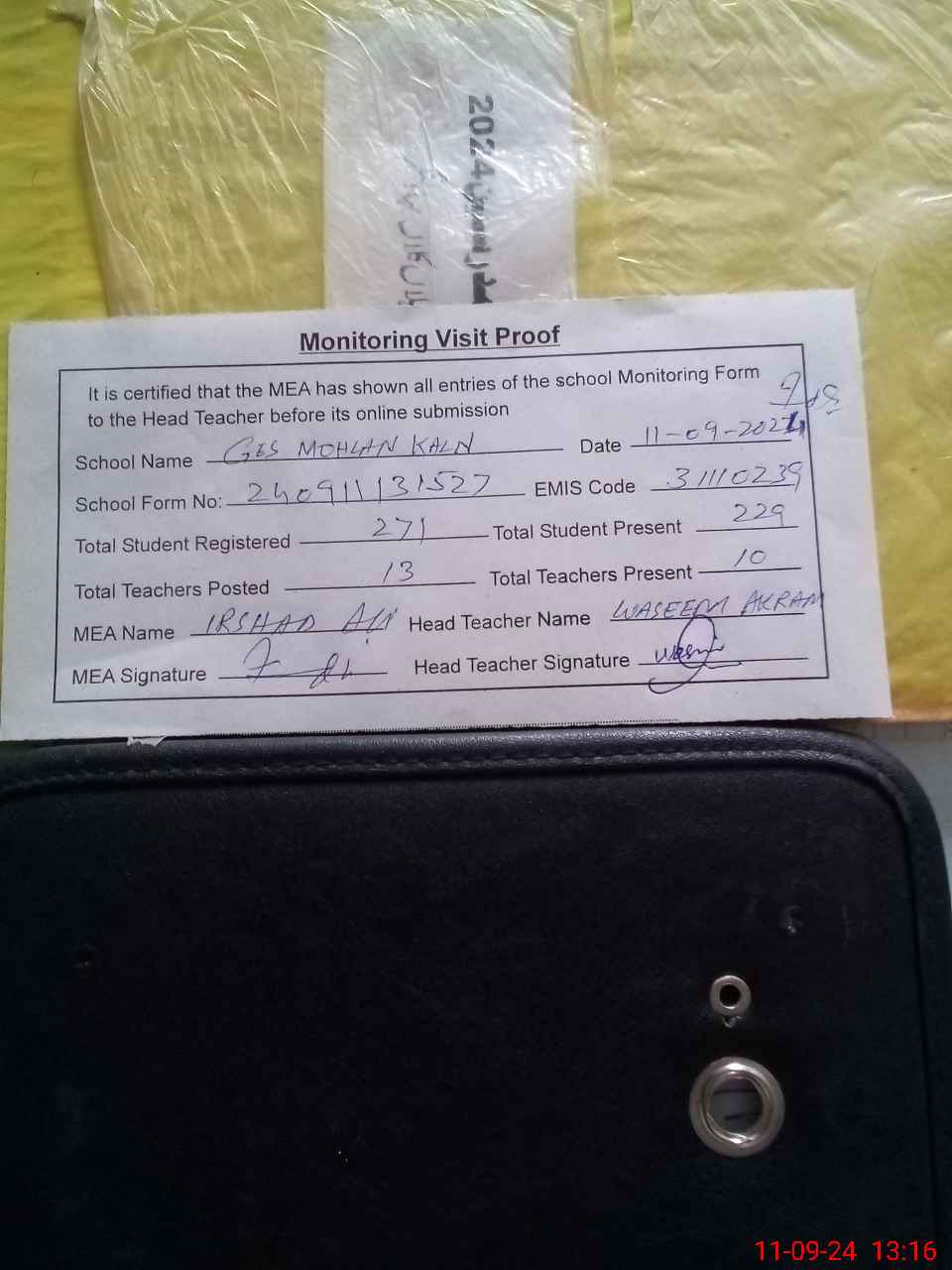 | EMIS Code: 31110239 | Name of School: GES MOHLAN KALAN | |||