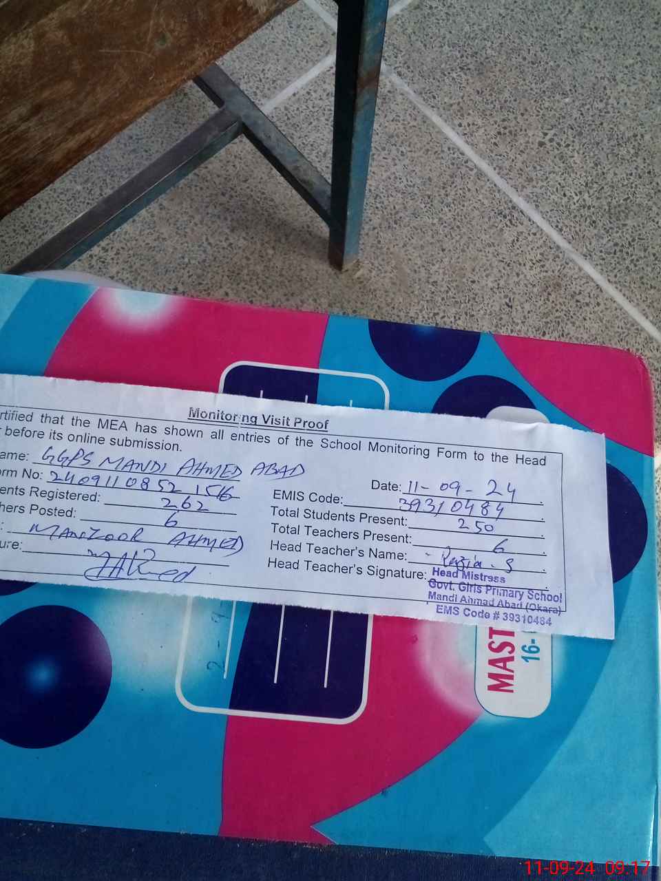 | EMIS Code: 39310484 | Name of School: GGPS MANDI AHMED ABAD | |||