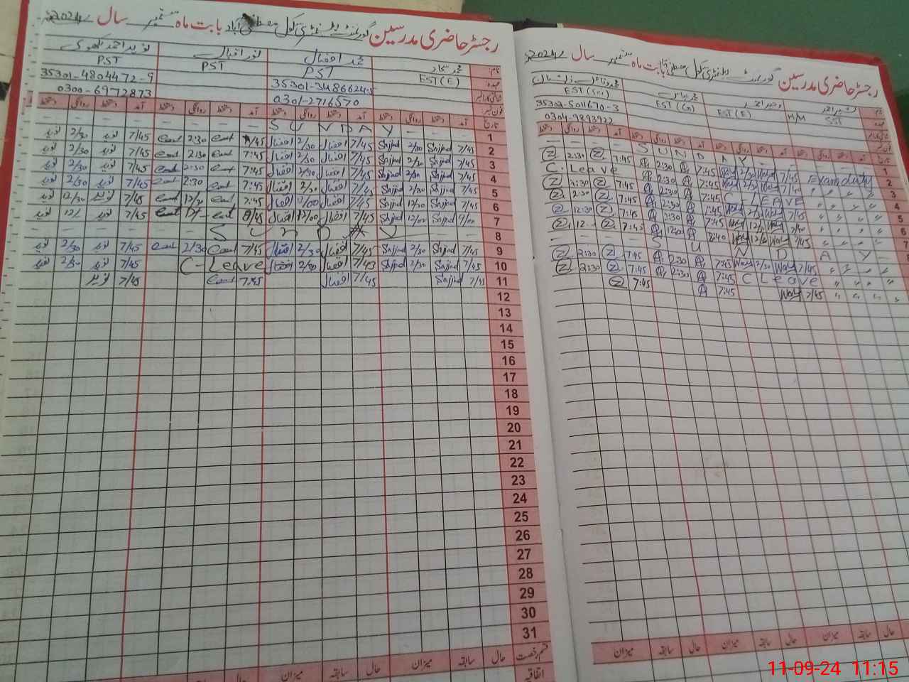 | 35**** | Ba**** Ah**** | SST | Regular | 0 | 0 | 0 | 0 | 0 | 0 | 0 | 0 | 0 | Exam Duty |
