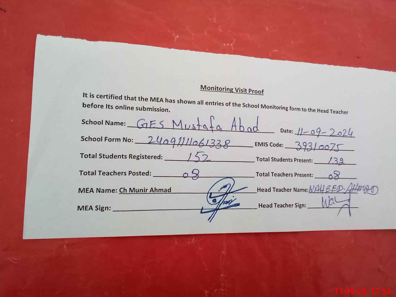 | EMIS Code: 39310075 | Name of School: GHS MUSTAFABAD | |||