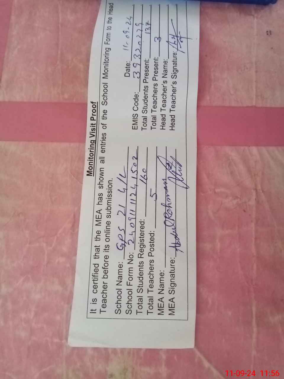 | EMIS Code: 39320279 | Name of School: GPS CHAK NO. 21/4-L | |||
