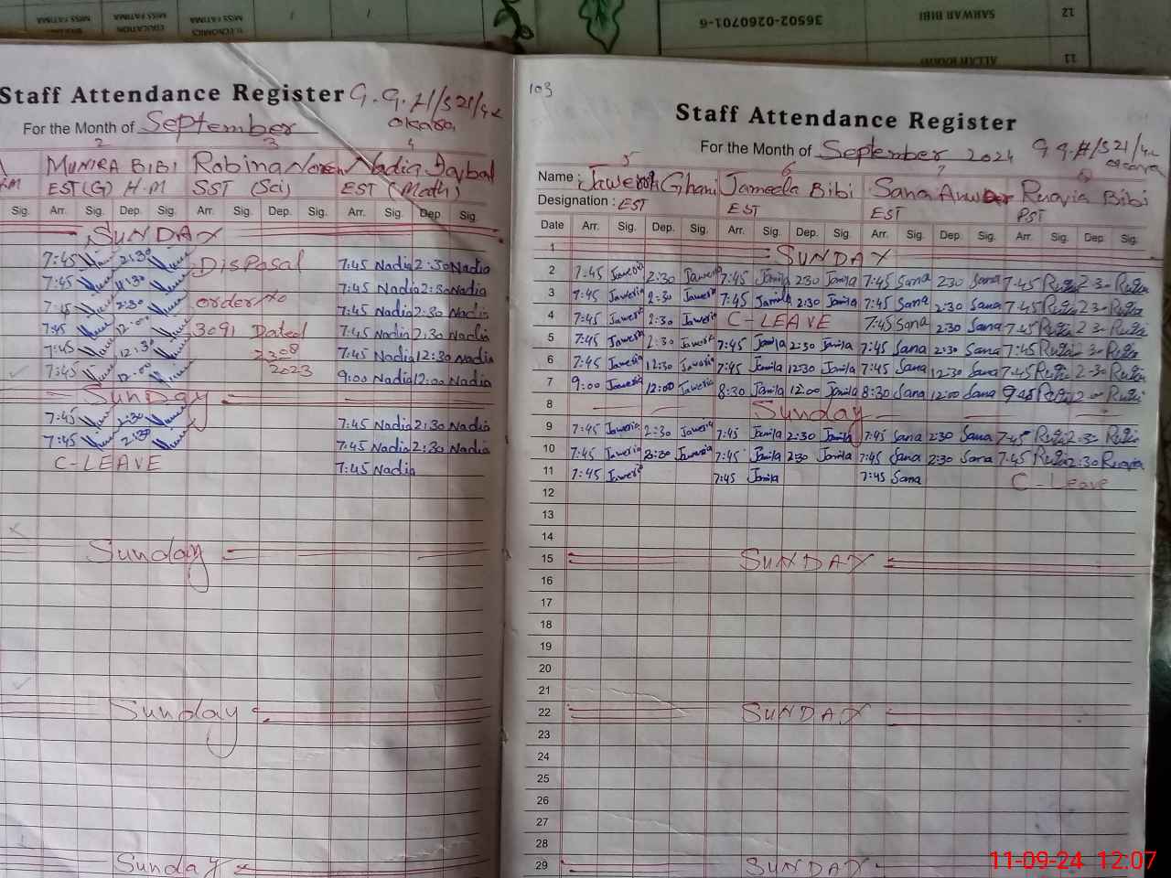 | CNIC | Full Name | Designation | R/C | Absence During Last Calender Month |