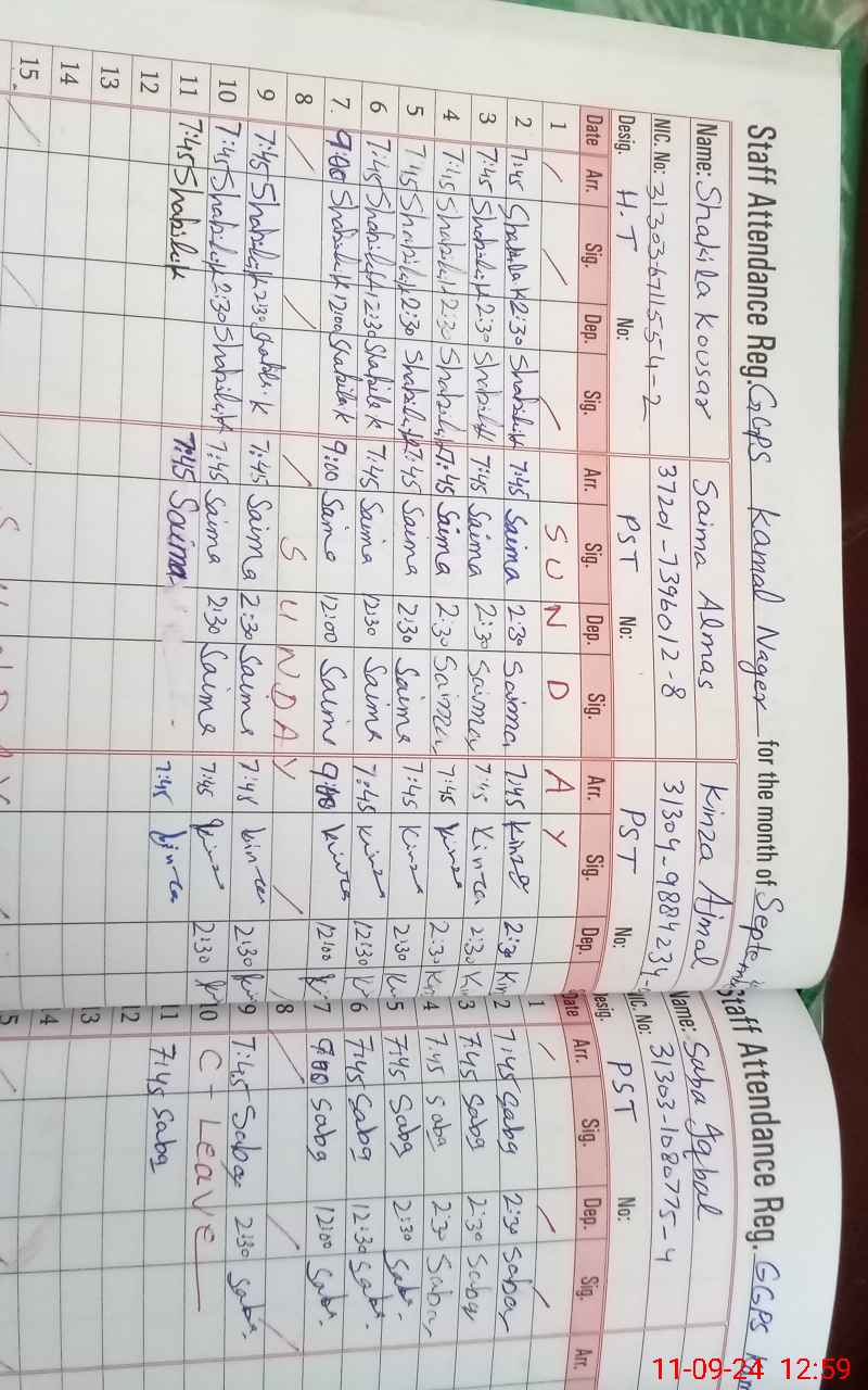 | CNIC | Full Name | Designation | R/C | Absence During Last Calender Month |