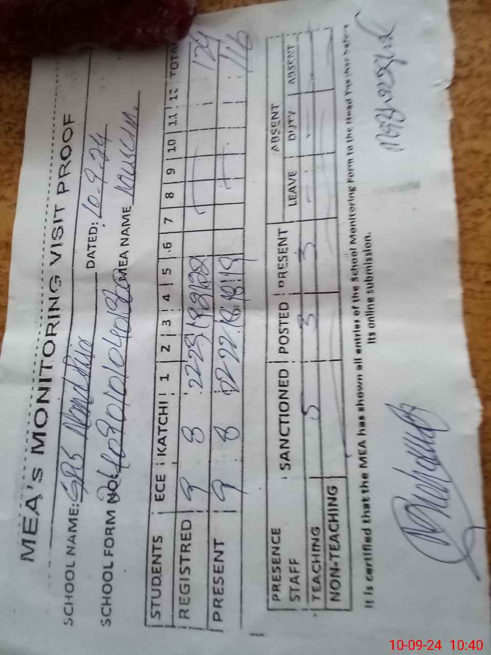 | Certified that this School was Inspected by the Undersigned MEA/DMO Today and the Information Stated Above is as Per Record. | |||||