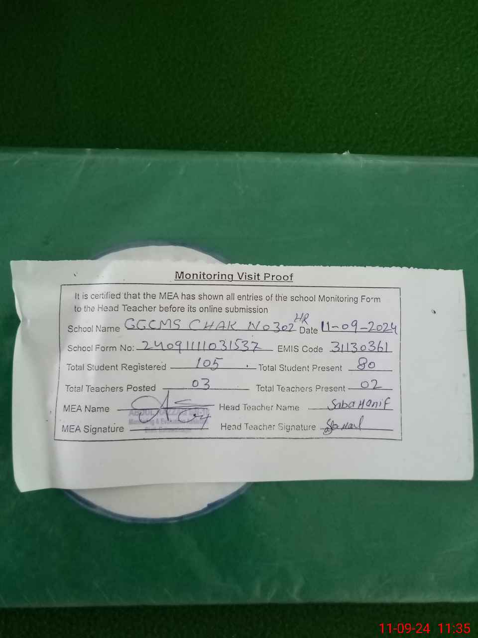 | EMIS Code: 31130361 | Name of School: GGCMS 302/HR | |||