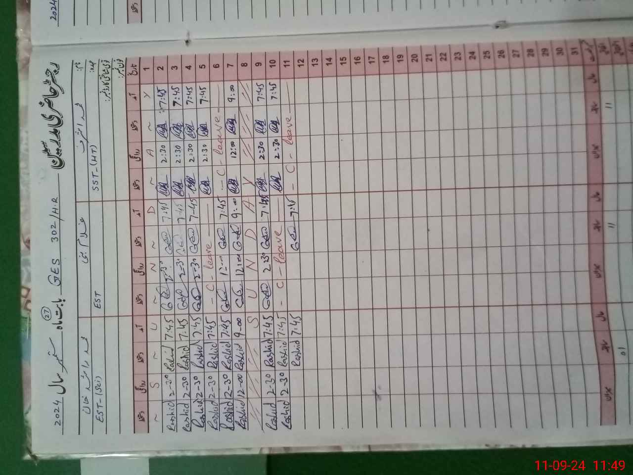 | CNIC | Full Name | Designation | R/C | Absence During Last Calender Month |