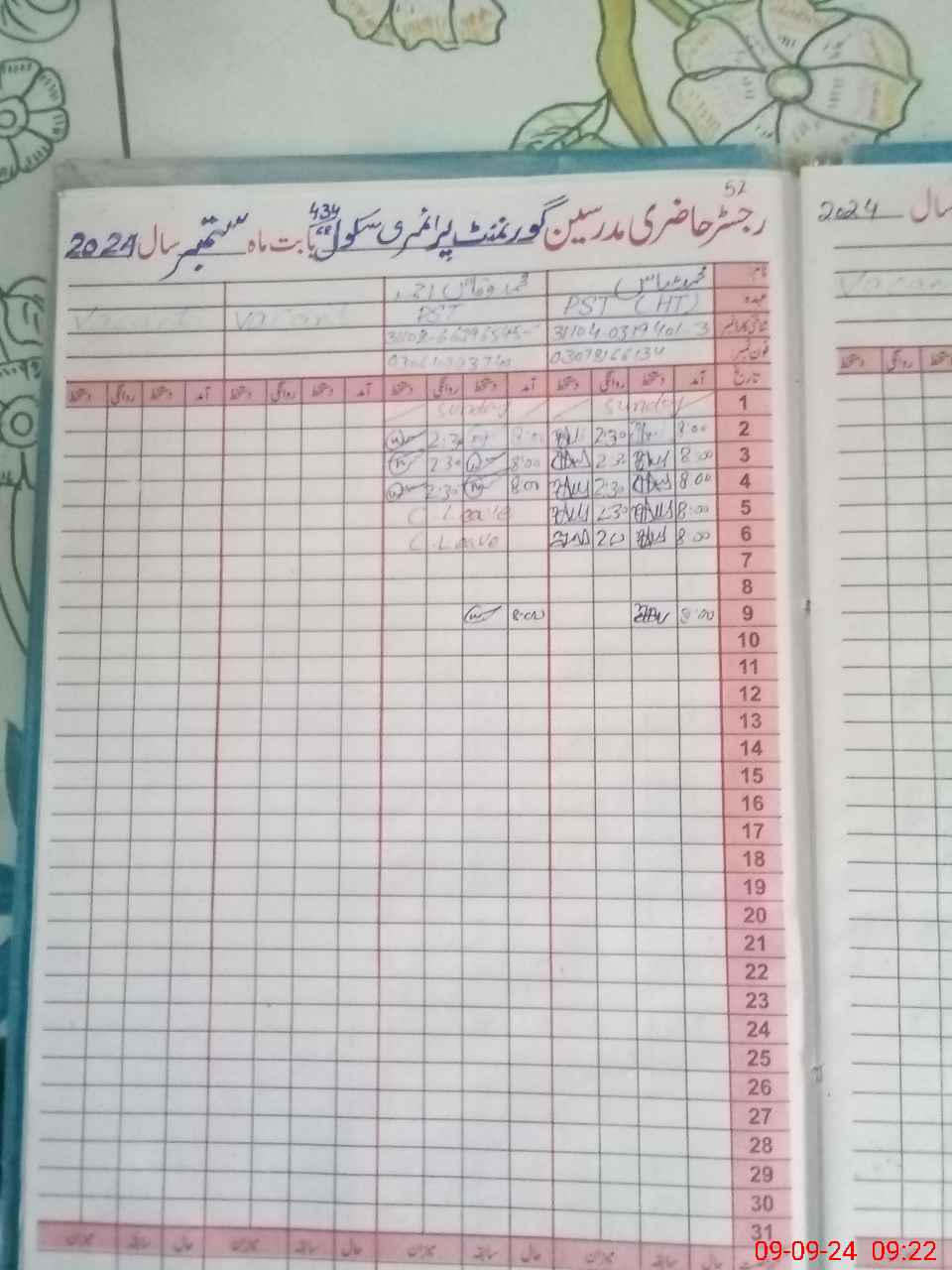 | Name: MU**** AB**** Designation: (School Headmaster's/Headmistress's) PST Phone/Cell Number: 03**** |