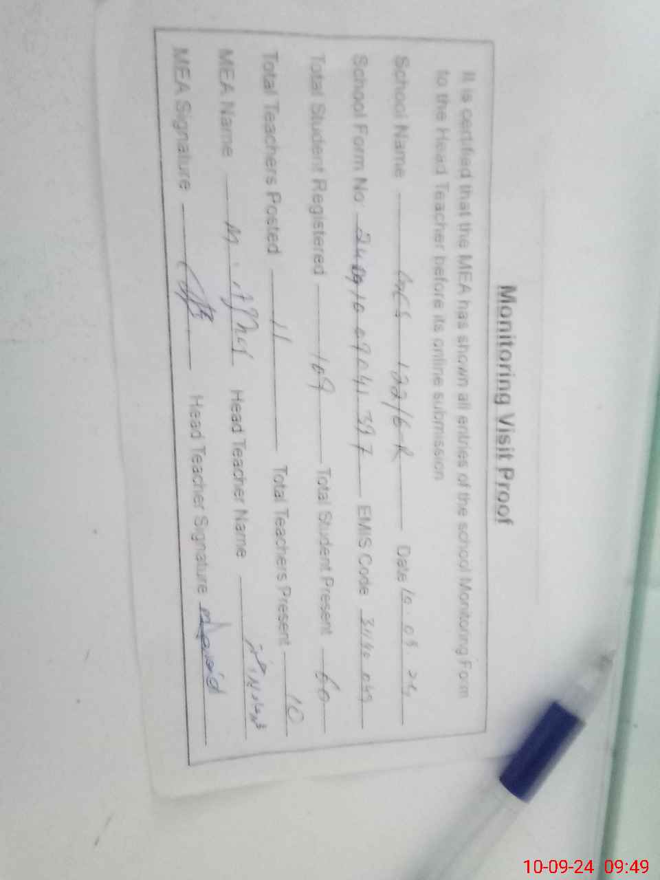 | Certified that this School was Inspected by the Undersigned MEA/DMO Today and the Information Stated Above is as Per Record. | |||||