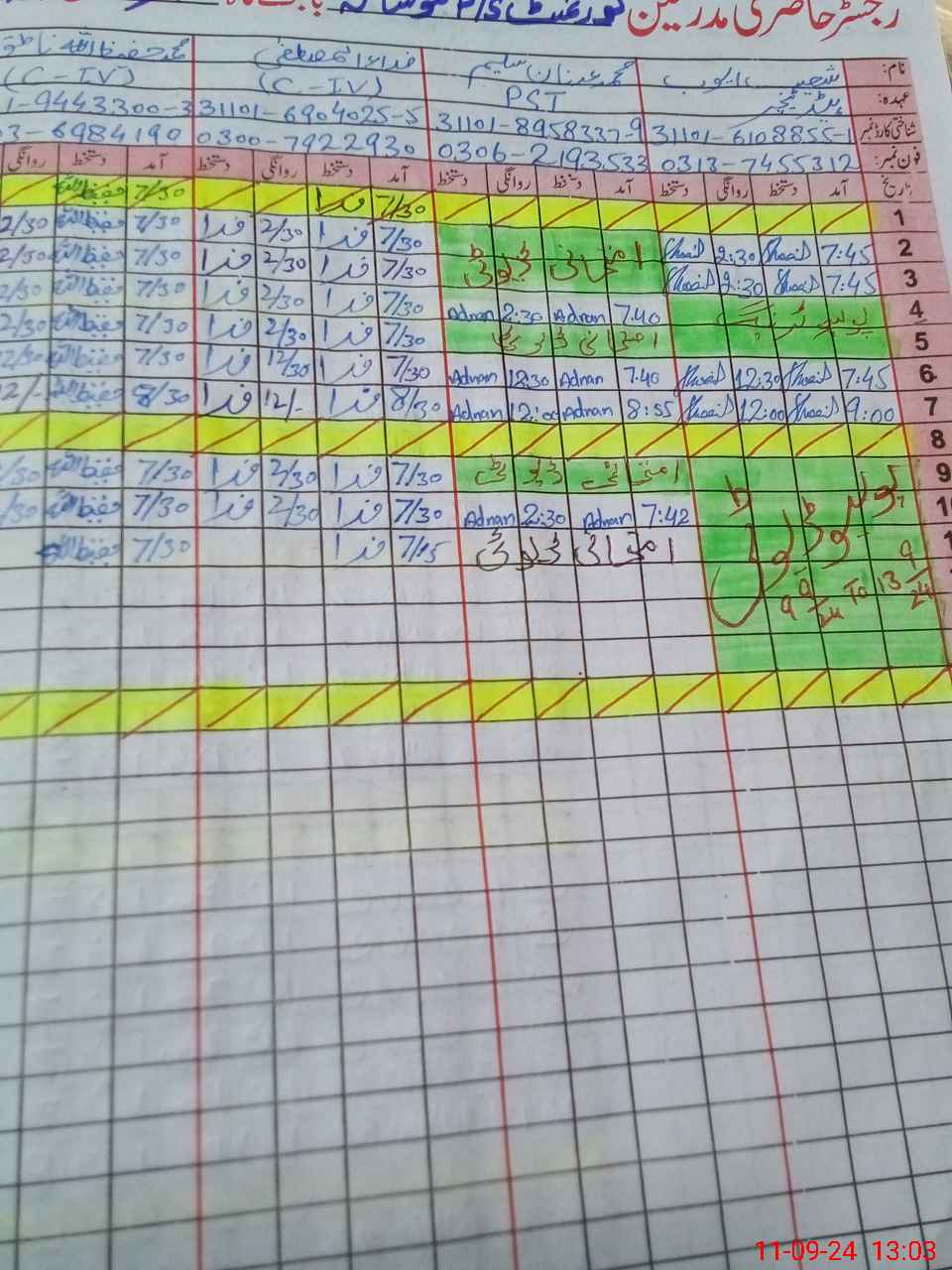 | Name: Sh**** Ay**** Designation: (School Headmaster's/Headmistress's) PST Phone/Cell Number: 03**** |