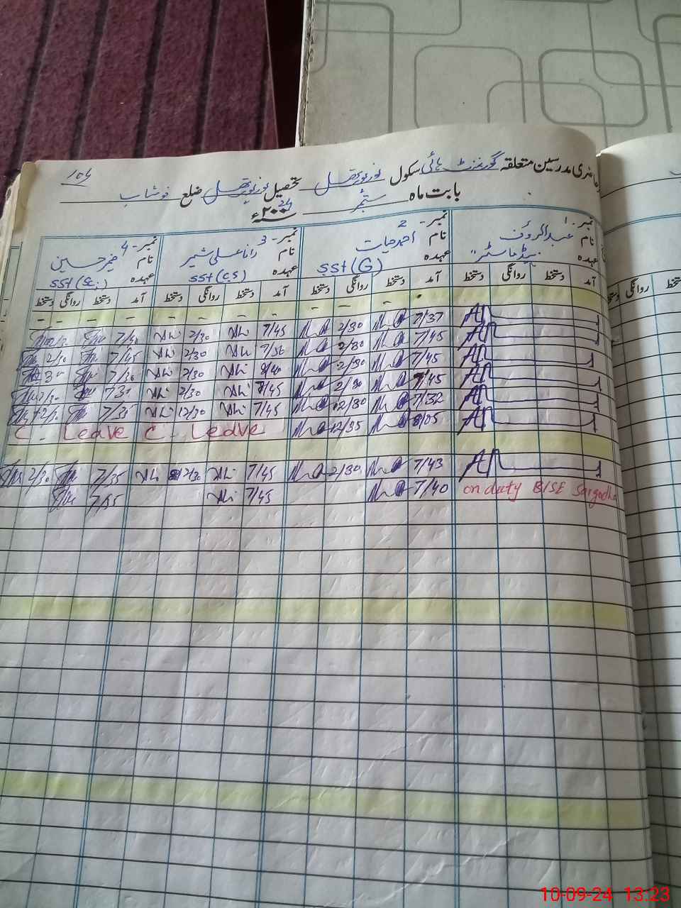 | Leave | Duty | Absent | Maternity | Medical | Ex- Pak |