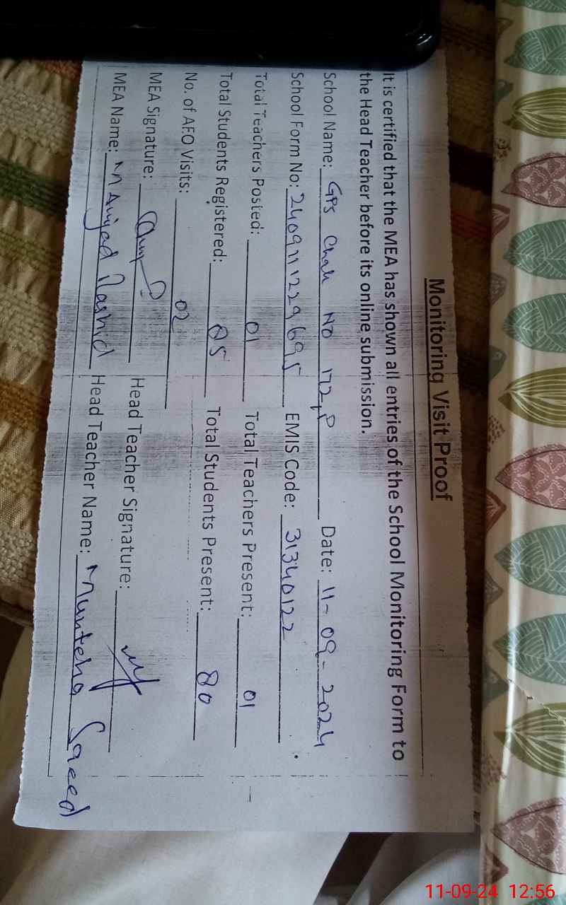 | Name: Mu**** Sa**** Designation: (School Headmaster's/Headmistress's) PST Phone/Cell Number: 03**** |