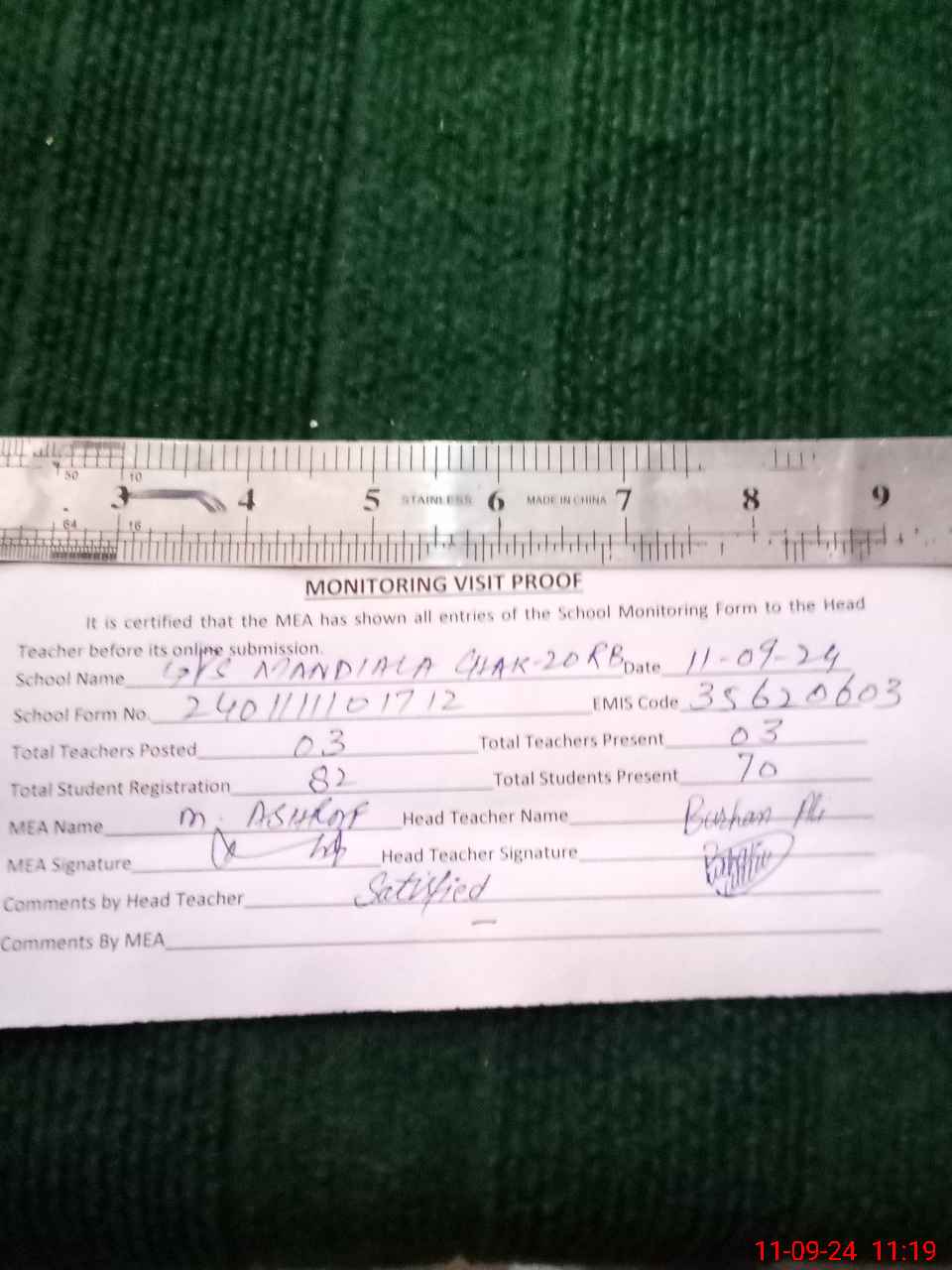 | EMIS Code: 35620603 | Name of School: GPS MANDIALA CHAK NO 20 RB | |||