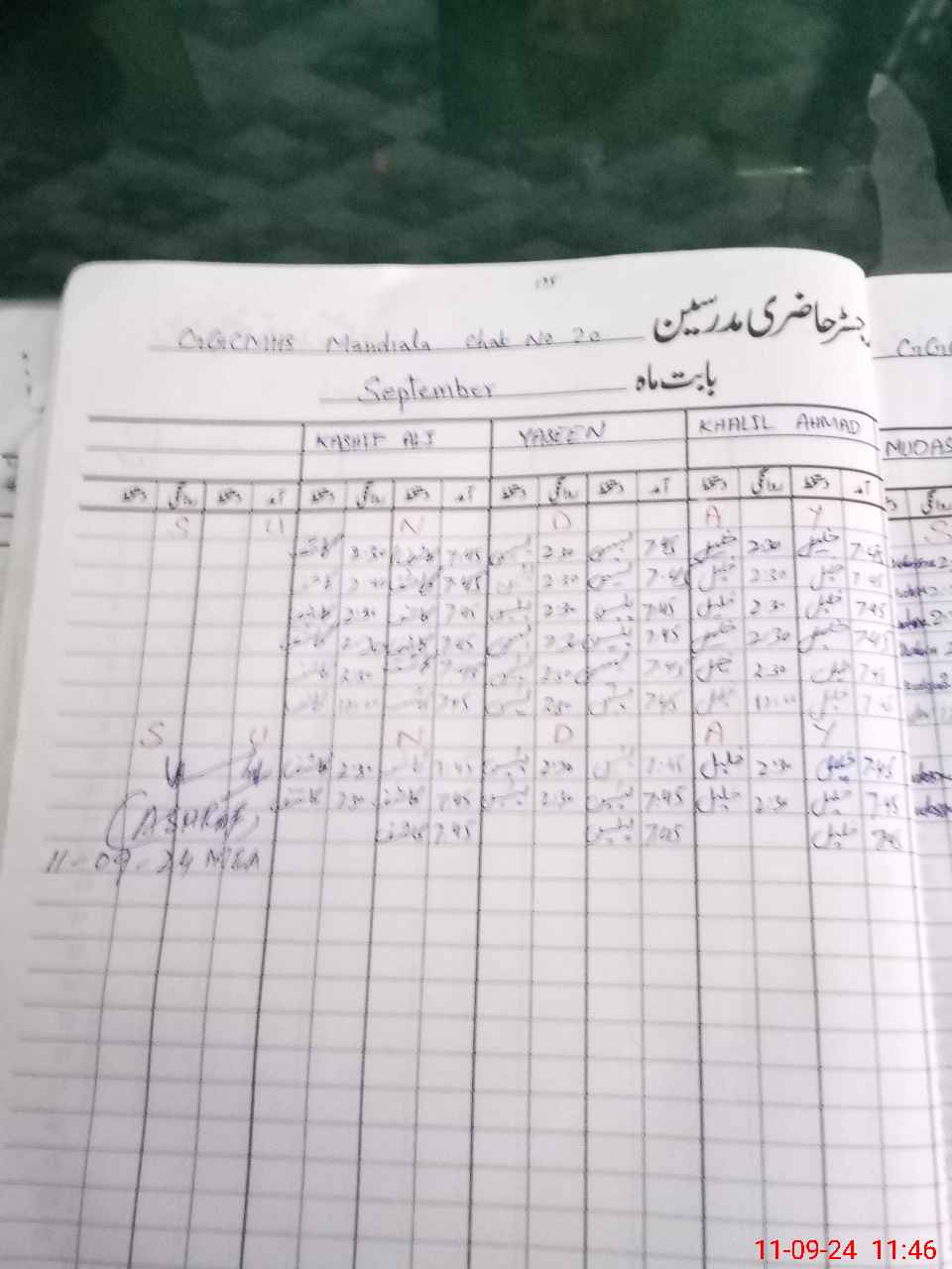 | Monitoring Date: 11-09-2024 | Start Time: 11-09-2024 11:33 AM | End Time: 11-09-2024 12:32 PM | Name of MEA: Mu**** As**** | |