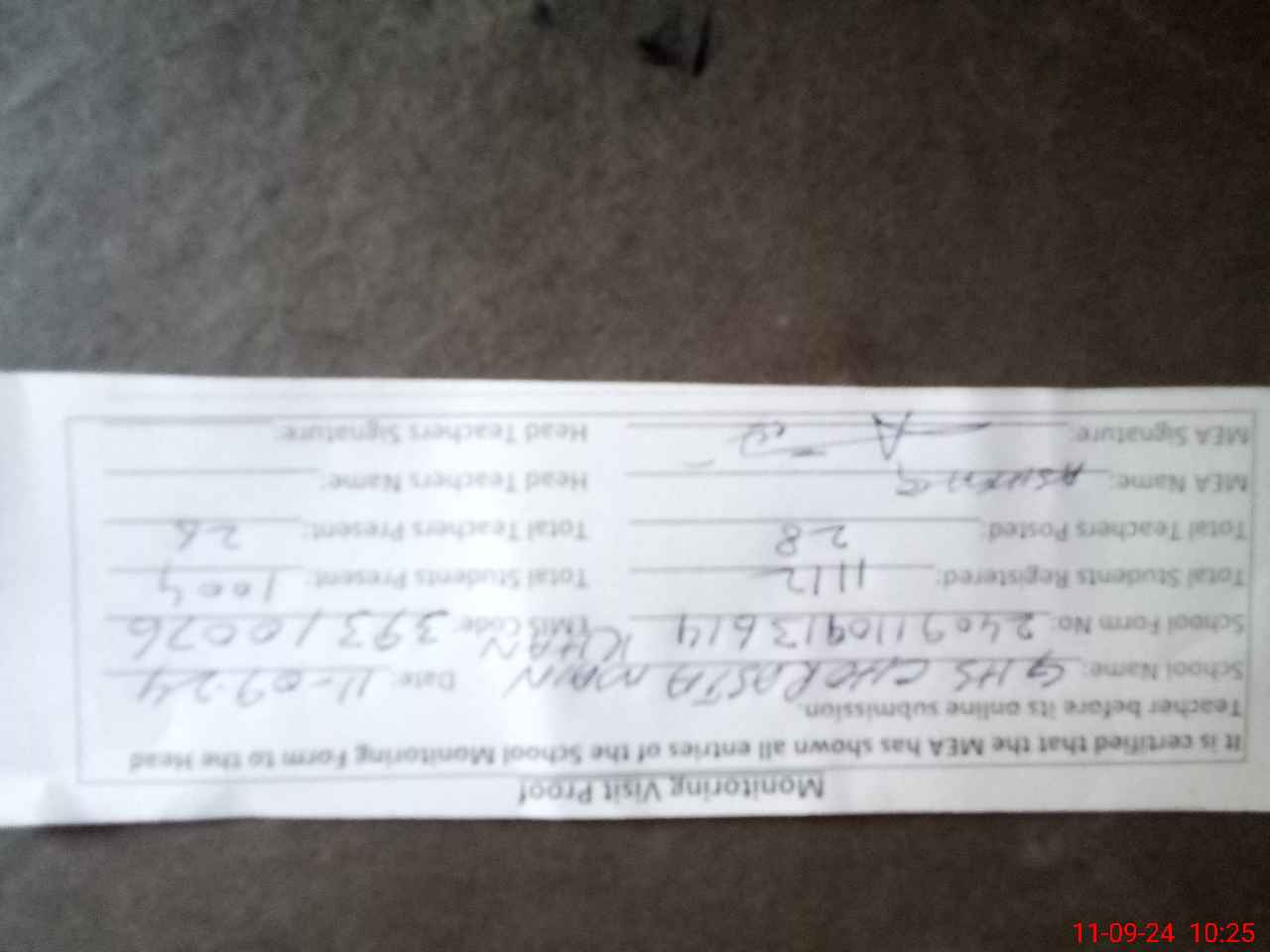 | Attendance Register | Head Teacher | MEA with School | Visit Proof |