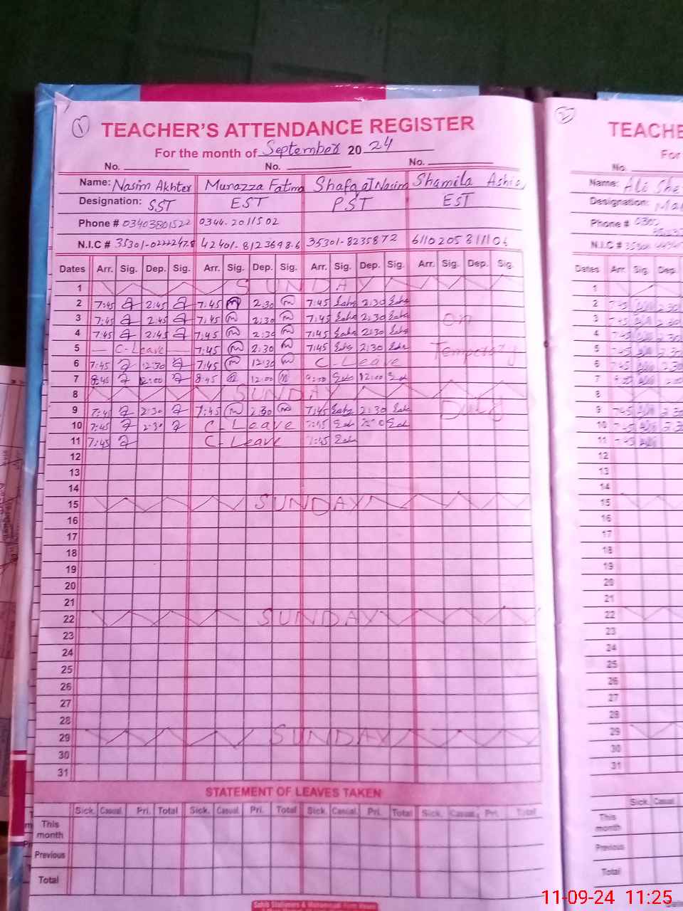 | Name: NA**** AK**** Designation: (School Headmaster's/Headmistress's) SST Phone/Cell Number: 03**** |