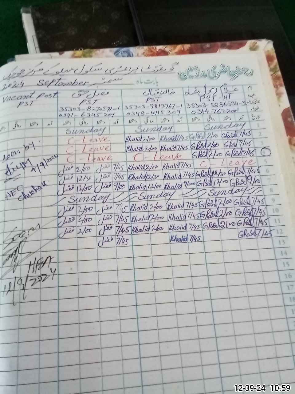 | Leave | Duty | Absent | Maternity | Medical | Ex- Pak |