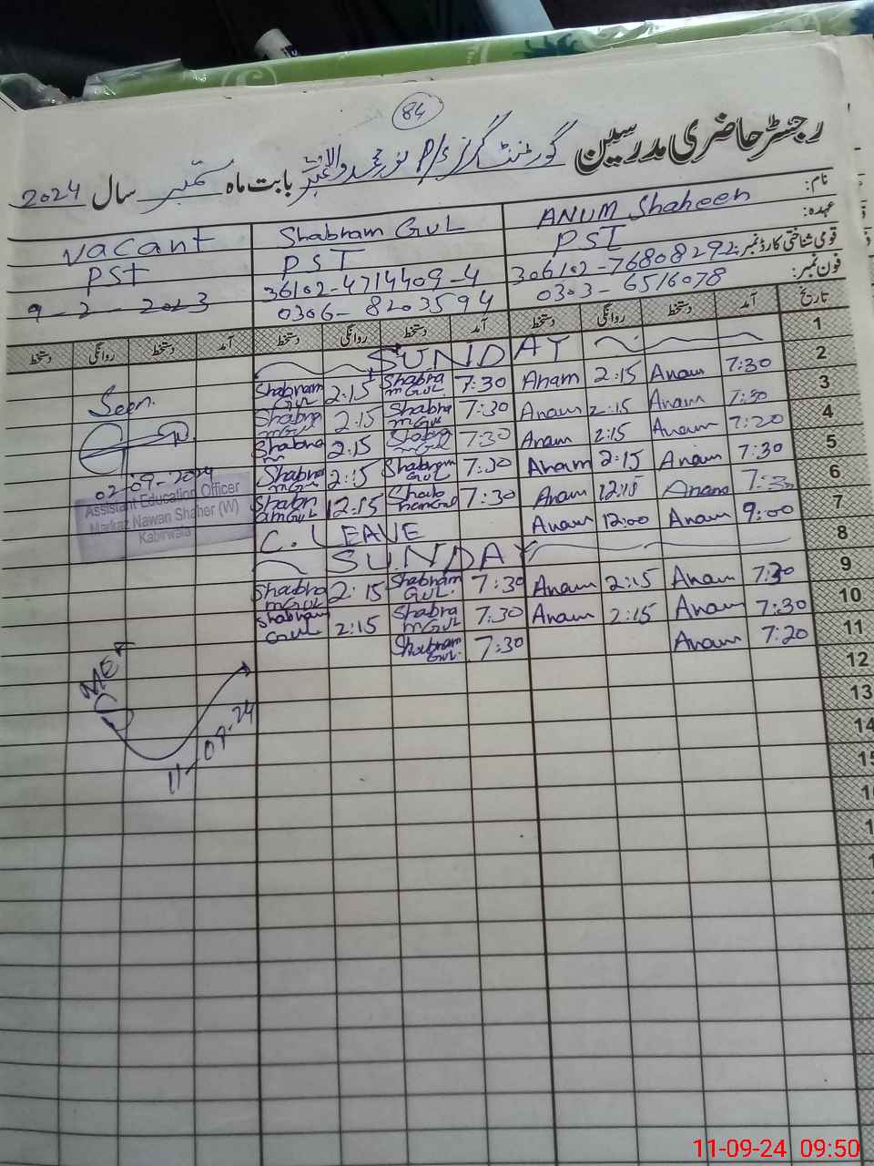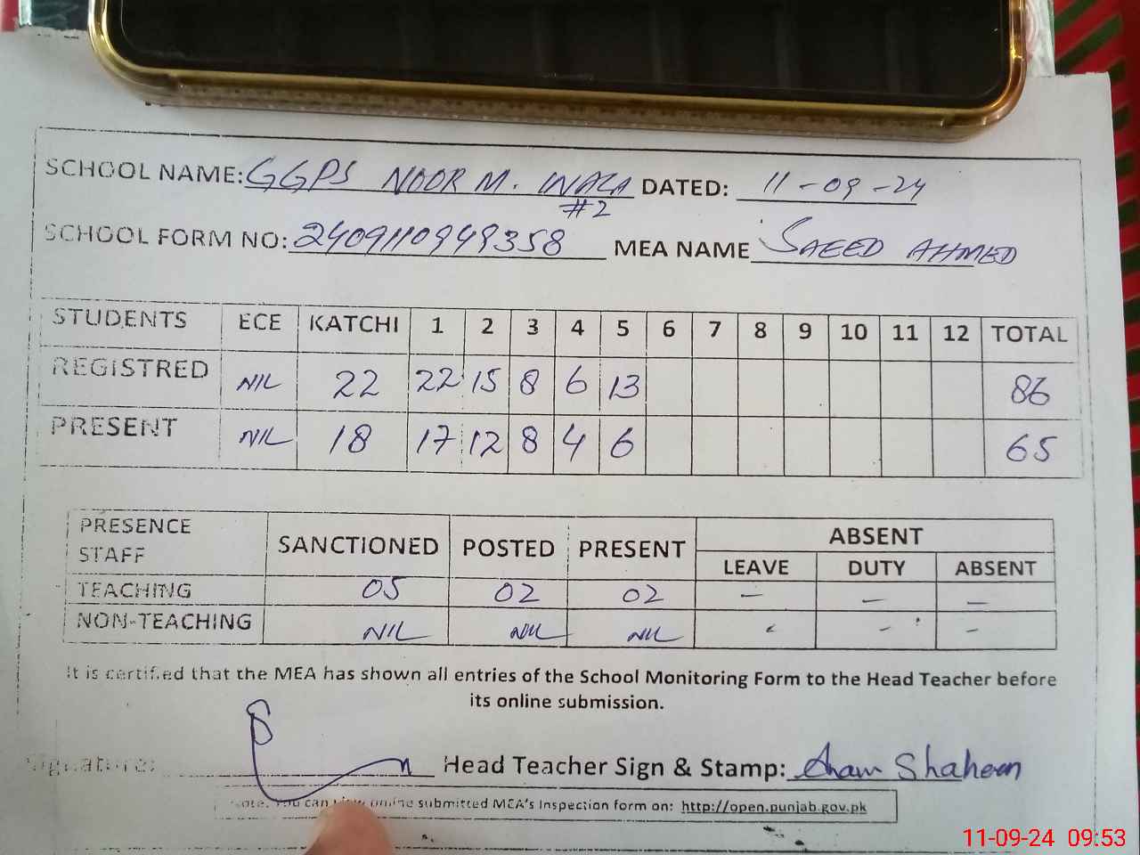 | Name: An**** Sh**** Designation: (School Headmaster's/Headmistress's) Pst Phone/Cell Number: 03**** |
