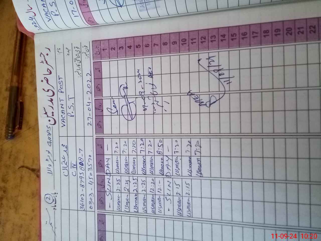 | CNIC | Full Name | Designation | R/C | Absence During Last Calender Month |