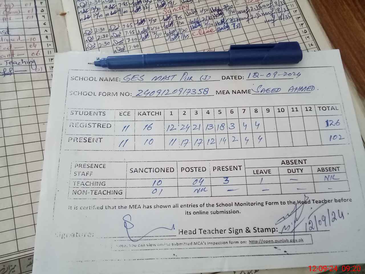 | Attendance Register | Head Teacher | MEA with School | Visit Proof |