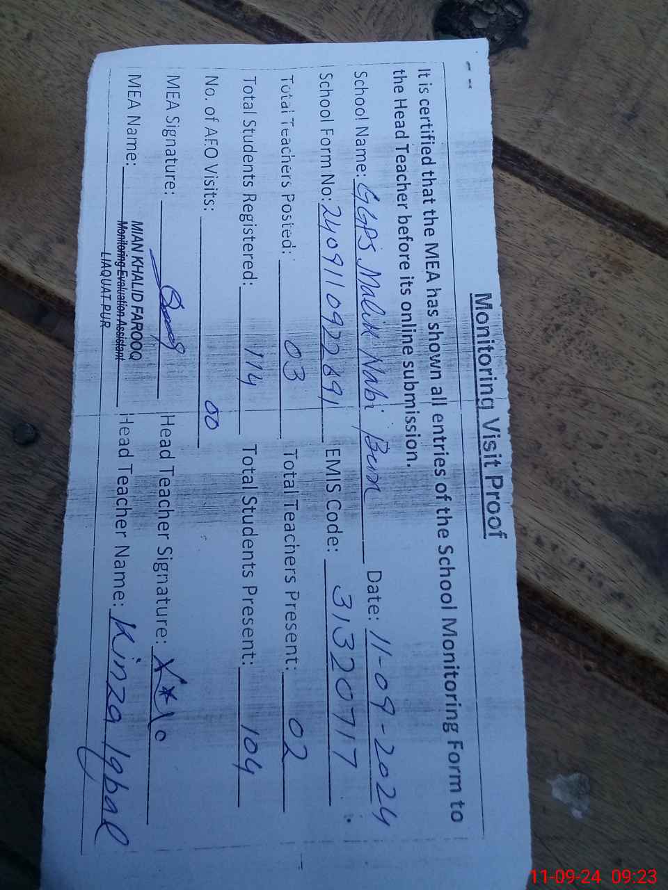 | EMIS Code: 31320717 | Name of School: GGPS MALIK NABI BUX | |||