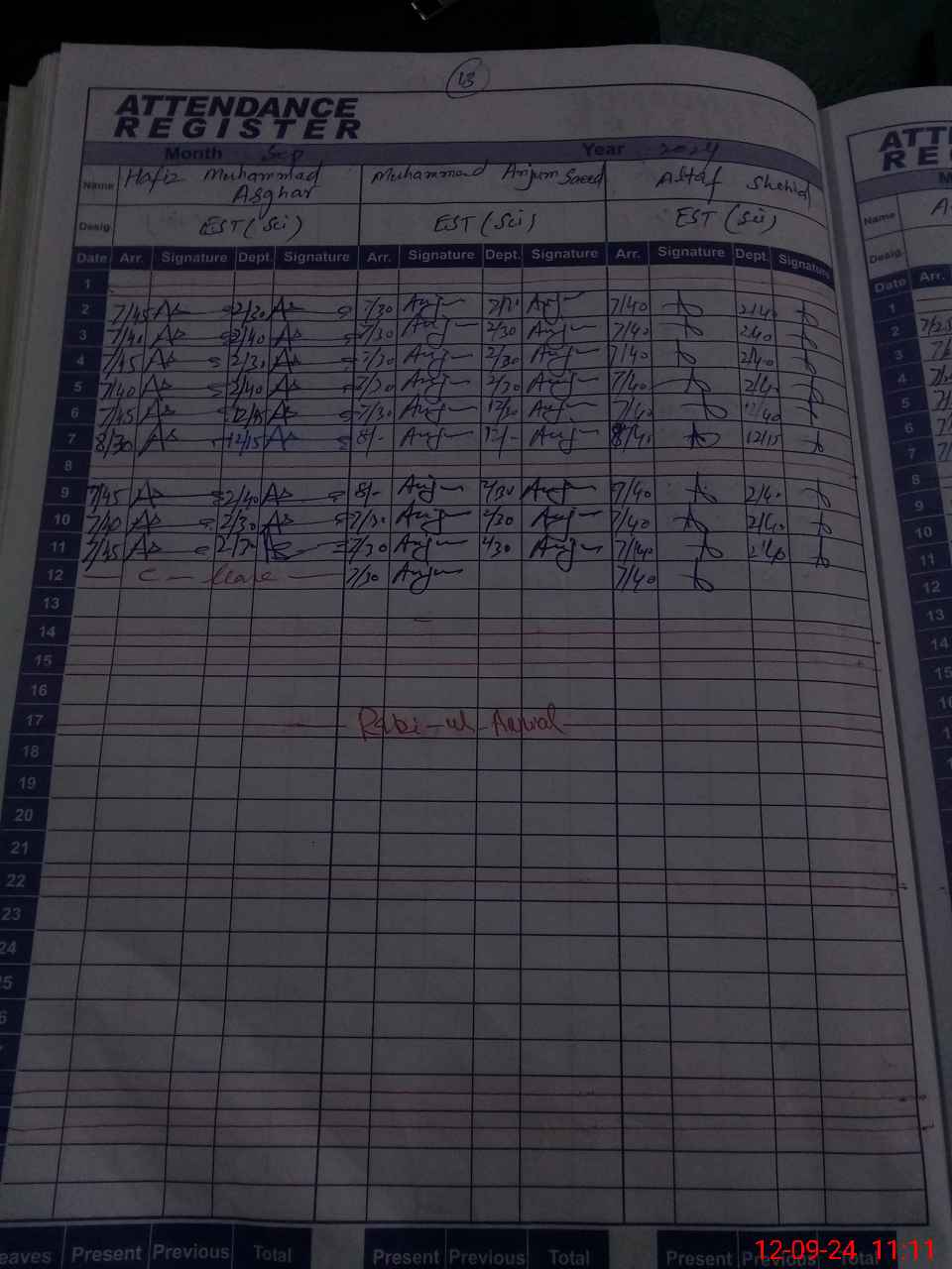 | CNIC | Full Name | Designation | R/C | Absence During Last Calender Month |