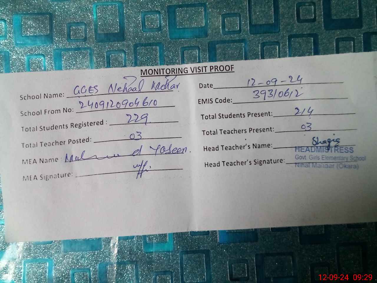 | EMIS Code: 39310612 | Name of School: GGES NAHAL MOHAR | |||