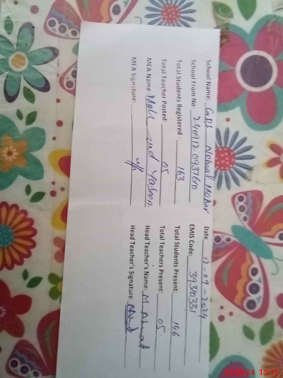 | EMIS Code: 39310331 | Name of School: GPS NEHAL MAHAR | |||