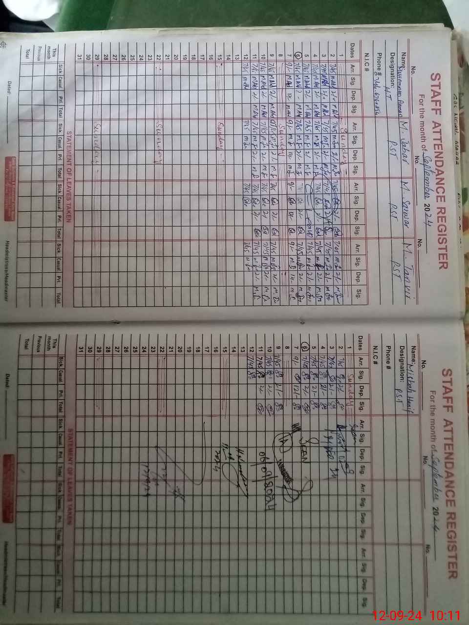 | CNIC | Full Name | Designation | R/C | Absence During Last Calender Month |