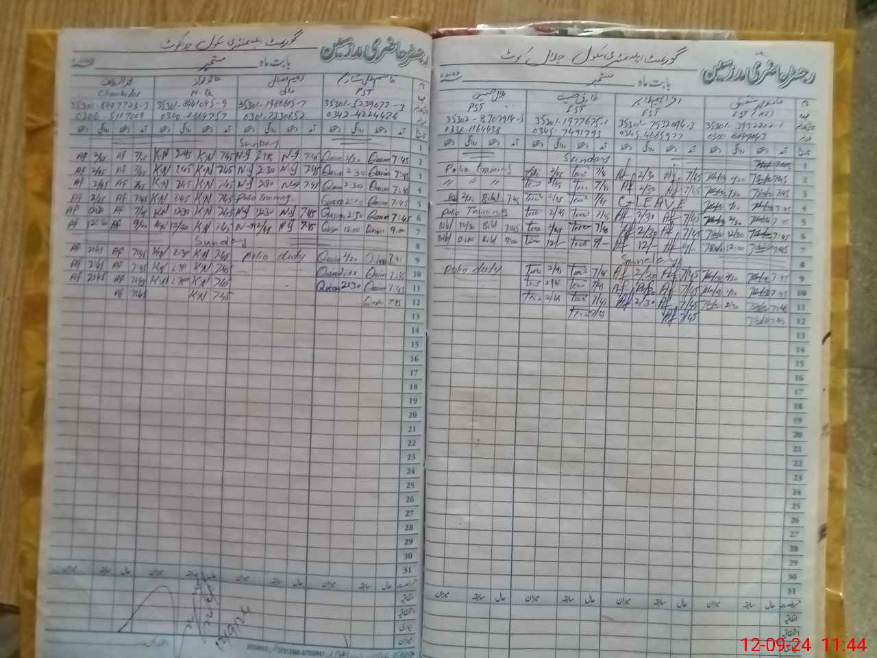 | CNIC | Full Name | Designation | R/C | Absence During Last Calender Month |