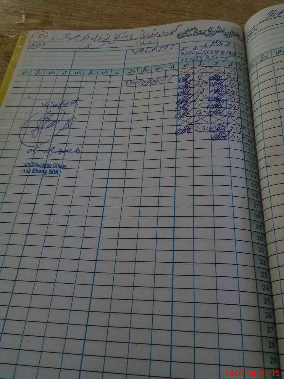 | Name: M.AJ**** Designation: (School Headmaster's/Headmistress's) PST Phone/Cell Number: 03**** |