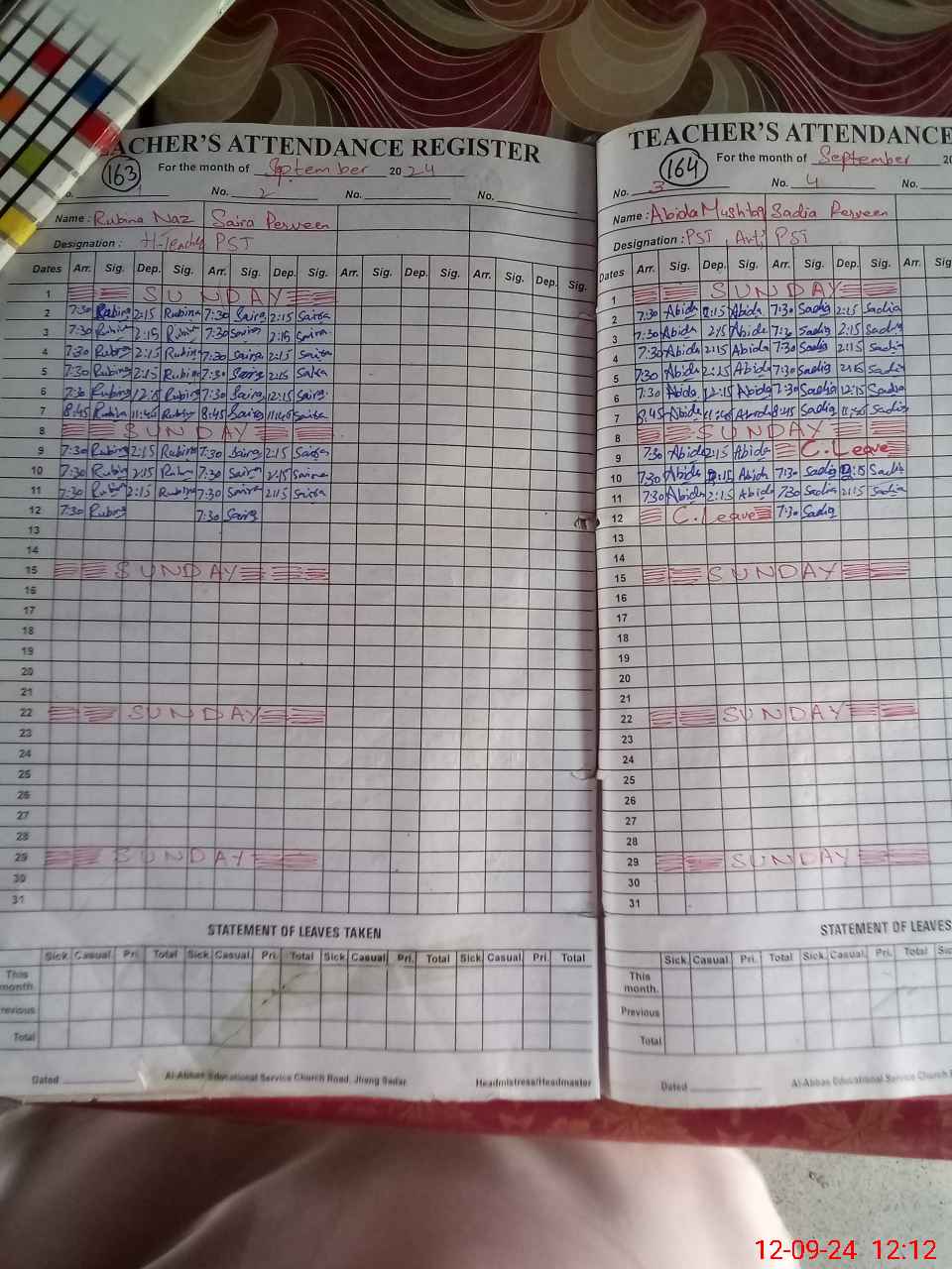 | Leave | Duty | Absent | Maternity | Medical | Ex- Pak |