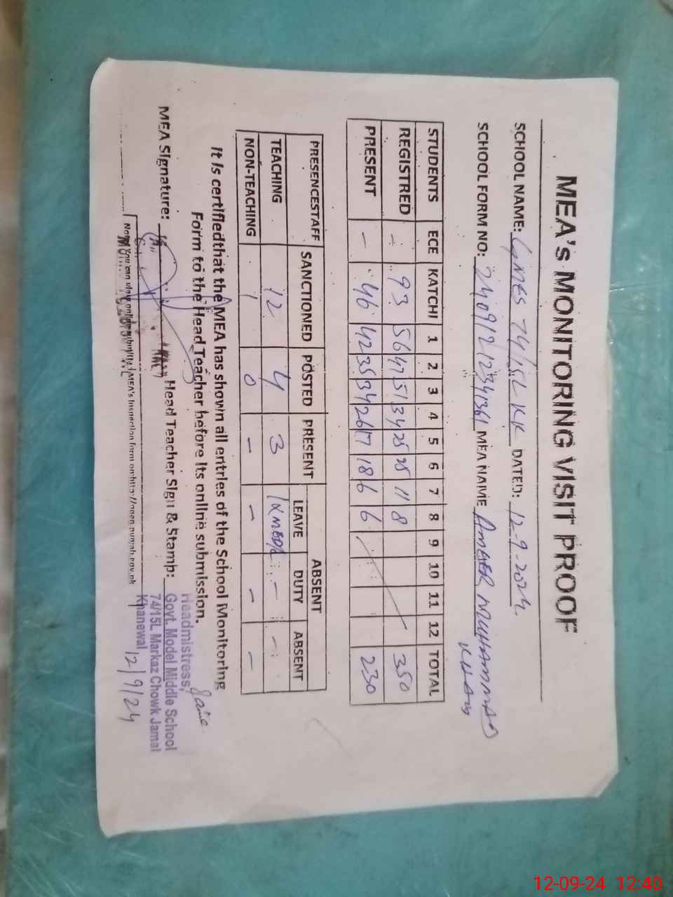 | Monitoring Date: 12-09-2024 | Start Time: 12-09-2024 12:05 PM | End Time: 12-09-2024 12:50 PM | Name of MEA: Am**** Mu**** Kh**** | |