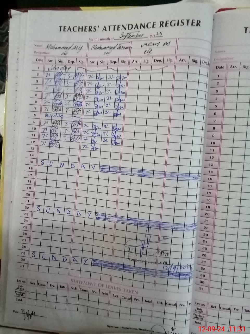 | Name: Mu**** Designation: (School Headmaster's/Headmistress's) S.S.T(G) Phone/Cell Number: 03**** |