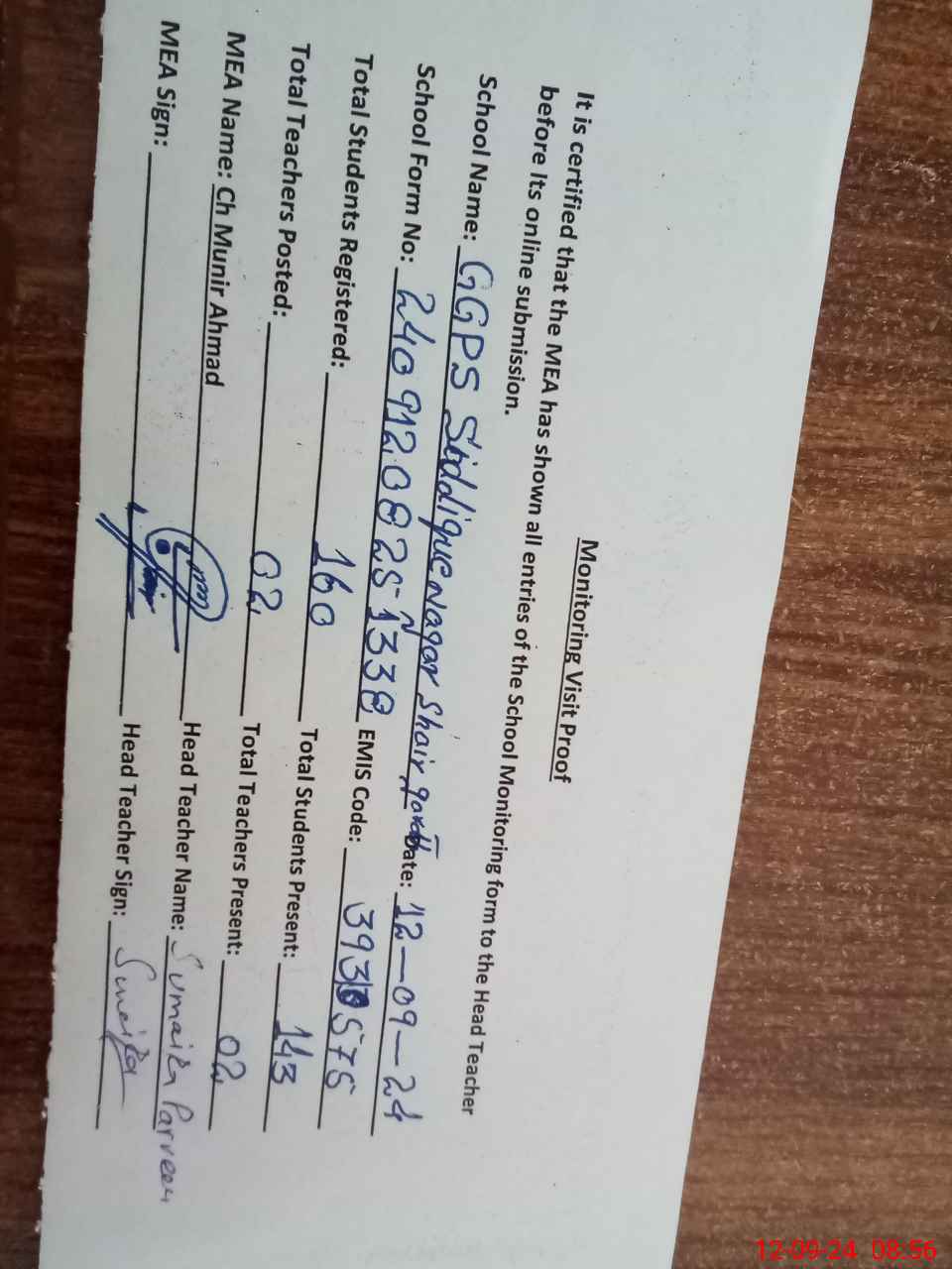| EMIS Code: 39310575 | Name of School: GGPS SIDDIQUE NAGAR SHAIR GARRH | |||