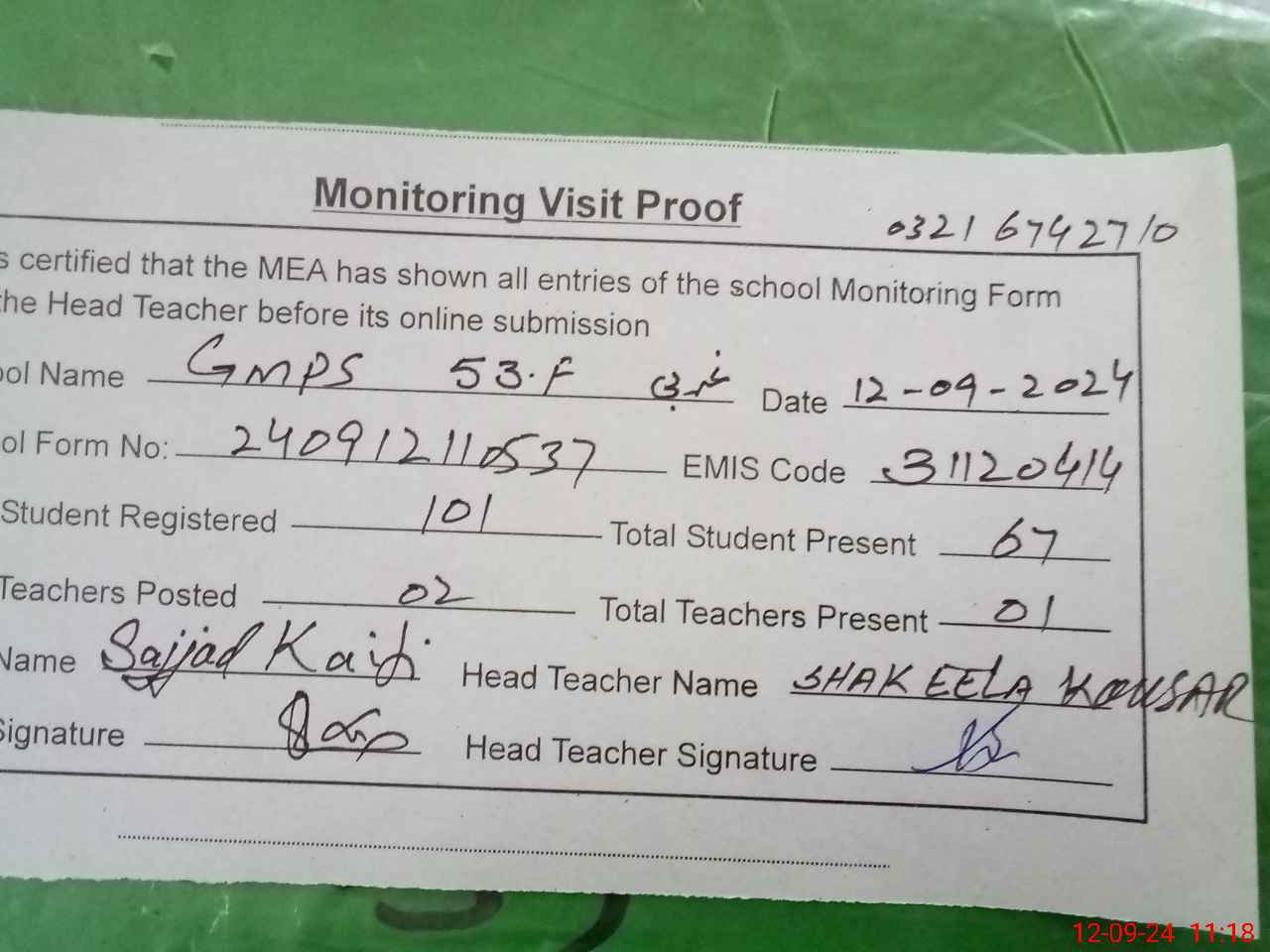 | EMIS Code: 31120414 | Name of School: GMPS CHAK NO.53/F ARBI (W) | |||