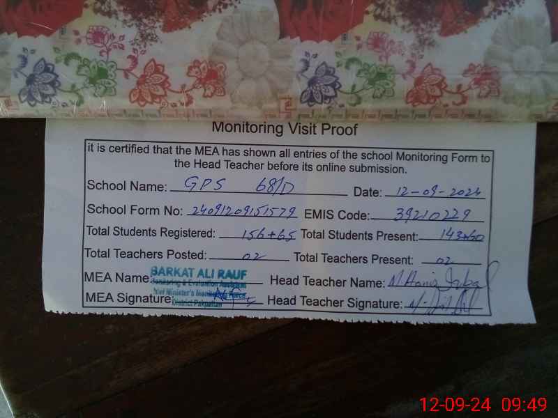 | EMIS Code: 39210229 | Name of School: GPS 68/D | |||