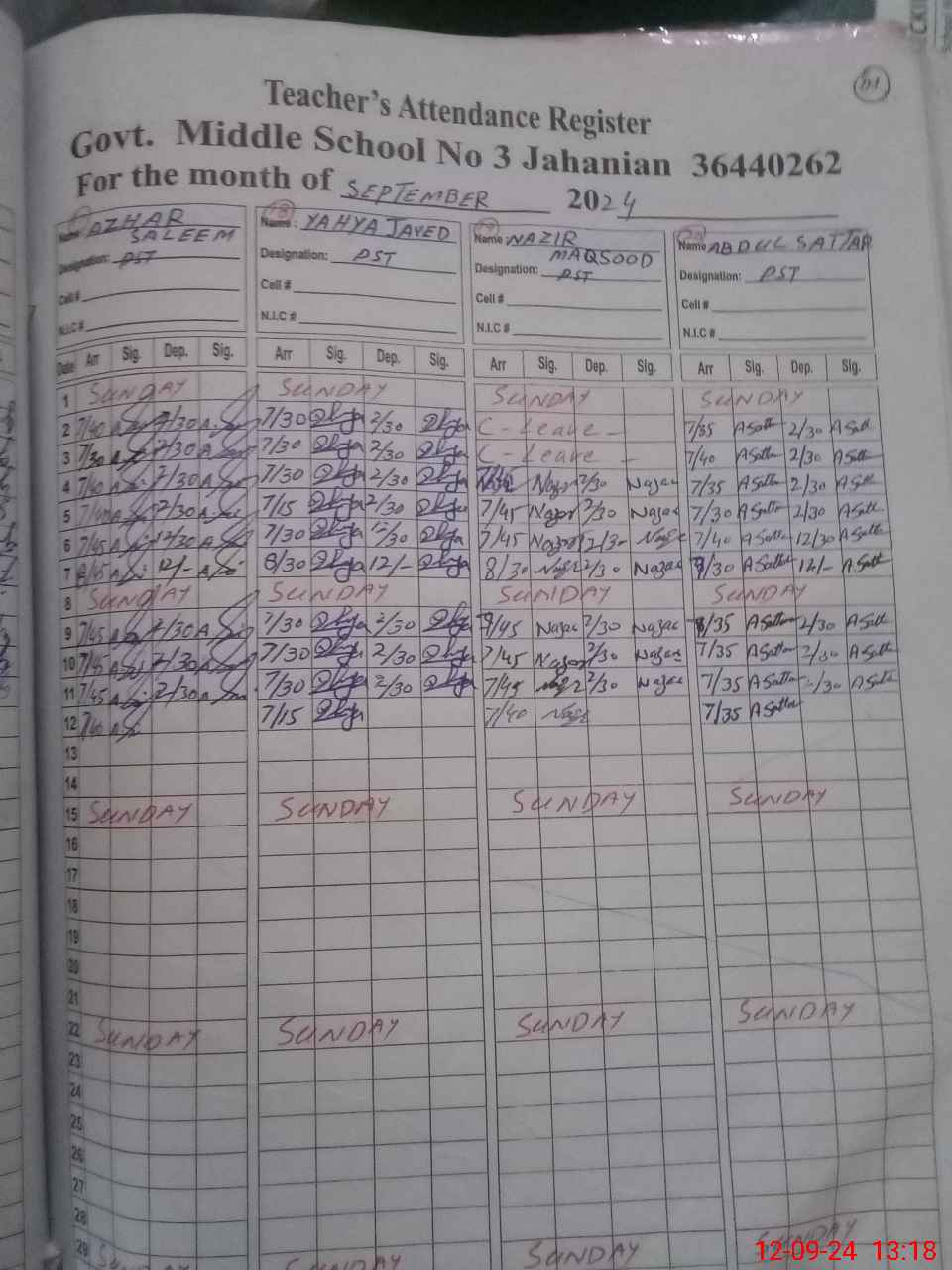 | Name: MU**** SH**** Designation: (School Headmaster's/Headmistress's) SST(G) Phone/Cell Number: 03**** |