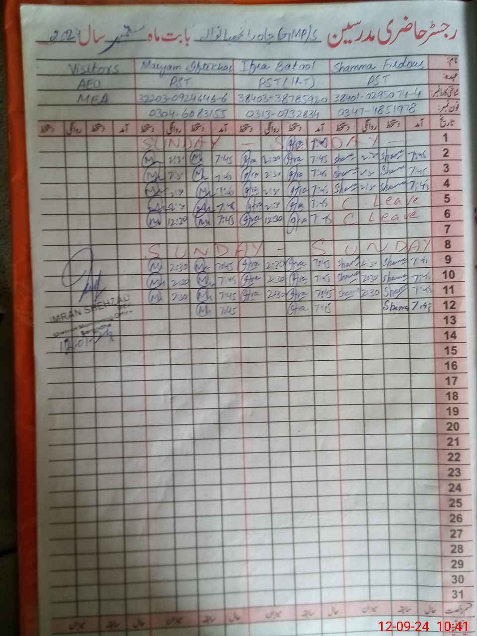 | Name: IF**** BA**** Designation: (School Headmaster's/Headmistress's) PST Phone/Cell Number: 03**** |