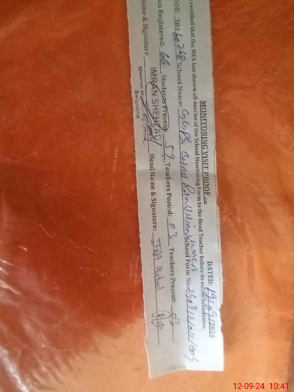 | Certified that this School was Inspected by the Undersigned MEA/DMO Today and the Information Stated Above is as Per Record. | |||||