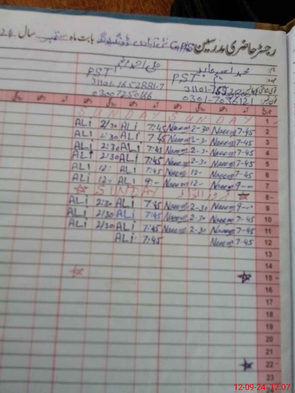 | Name: MNa**** Designation: (School Headmaster's/Headmistress's) PST Phone/Cell Number: 03**** |