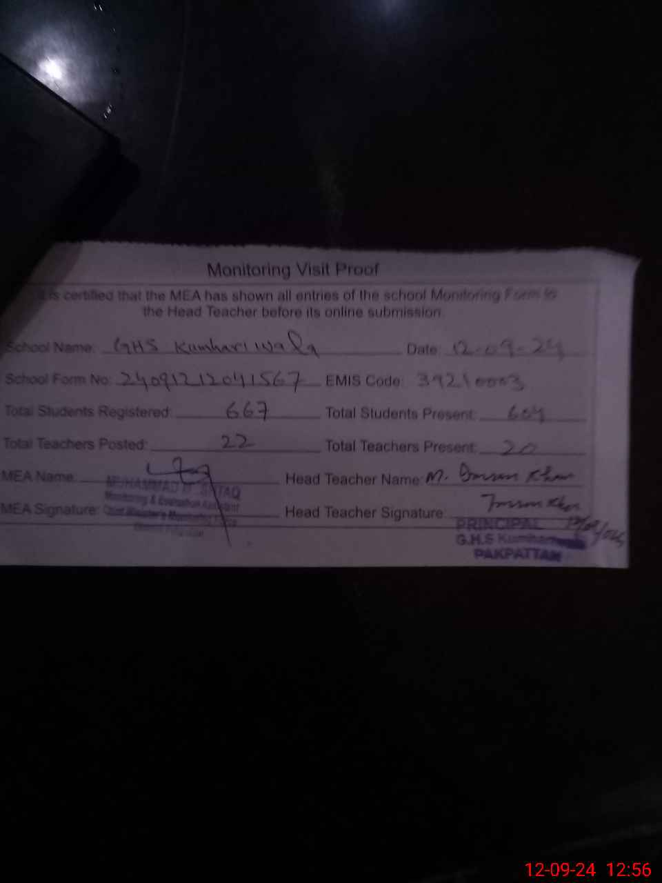 | Name: MU**** IM**** KH**** Designation: (School Headmaster's/Headmistress's) PRINCIPAL Phone/Cell Number: 03**** |