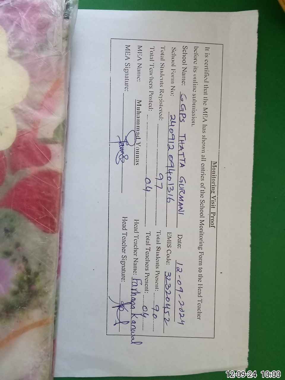 | EMIS Code: 32320452 | Name of School: GGPS THATTA GURMANI | |||