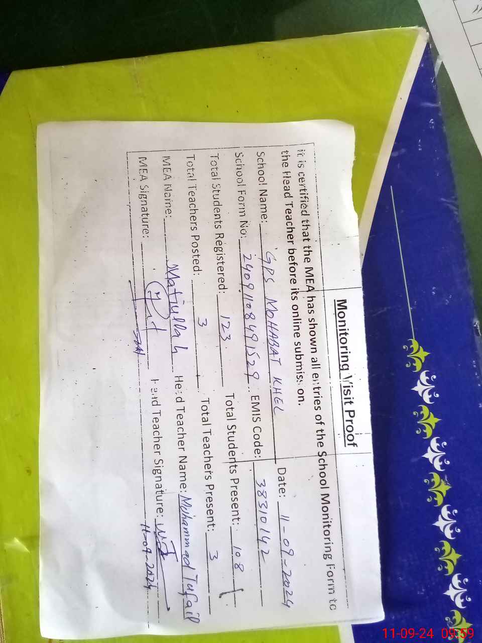 | EMIS Code: 38310142 | Name of School: GPS MOHABAT KHEL | |||