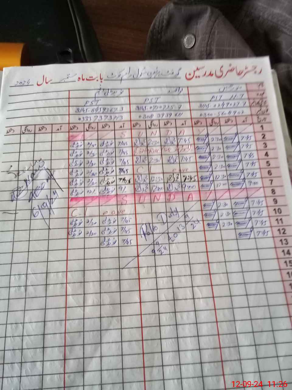 | CNIC | Full Name | Designation | R/C | Absence During Last Calender Month |
