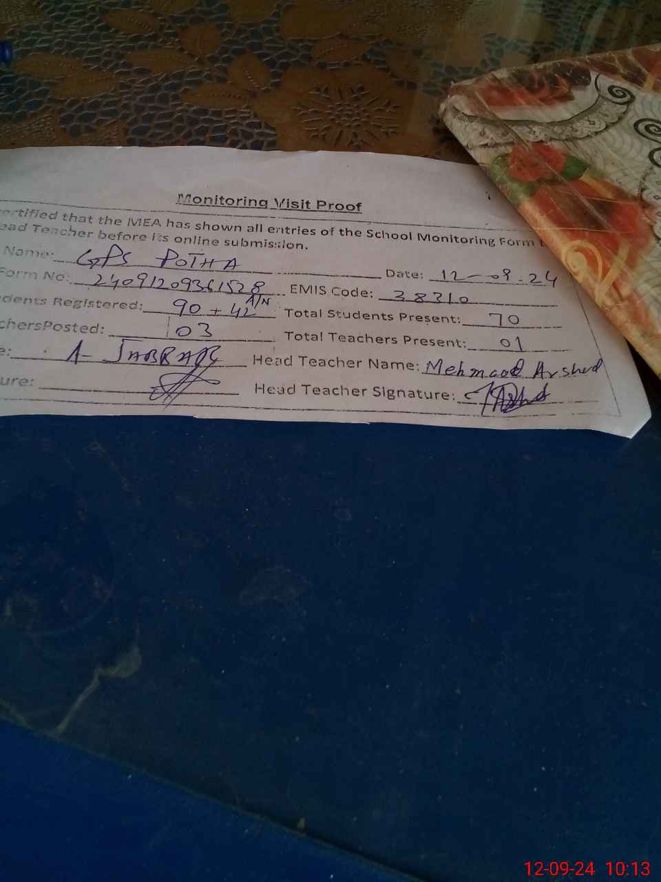 | EMIS Code: 38310139 | Name of School: GPS POTHA | |||